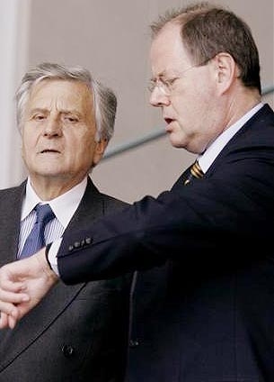1.Reihe von links: EZB-Präsident Jean-Claude Trichet, Bundesfinanzminister Peer Steinbrück, Dr. Pohl 2. Reihe: Frau Anna Luise Seidel, Verleger Werner Semmler